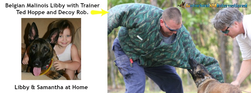 Personal Protection Dog training and handling, from our Basic Protection Dogs through our Elite Family Protection Dogs require the help of professional trainers. You have come to the right place here at GatorlandK9 Internation with Ted & RJ Hoppe working together to help you select, custom train and teach you to handle your new Family Protection Dog. We understand that this is not just any dog but a new member of your Family. Contact Ted Hoppe below for more information and videos of our protection dog training.